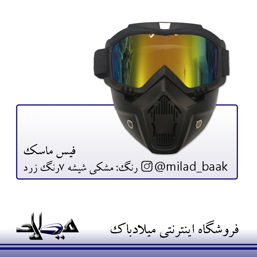 فیس ماسک مشکی شیشه 7 رنگ زرد موتورسیکت