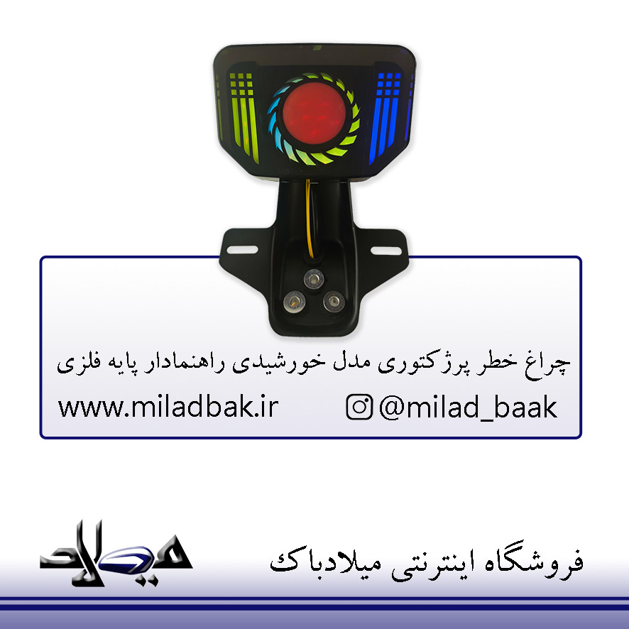 چراغ خطر پرژکتوری رانینگ دار مدل خورشیدی راهنما دار پایه فلزی موتورسیکلت