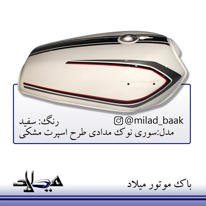 باک موتورسیکلت میلاد باک مناسب برای موتور سیکلت هوندا با حجم موتور 125، 150 و 200 می باشد، این باک بسیار باکیفیت و دارای ضخامت ورق 8 میلی متر است. حجم این باک تقریبا 10 لیتر و دارای بسته بندی اصولی است. از جمله ویژگی های باک موتورسیکلت میلاد باک رنگ ثابت و مقاوم در برابر آفتاب زدگی نیز می باشد، این محصول شستشو و چربی گیری می شود و دارای رنگ کوره ای مایع درجه 1 است. همچنین این باک دارای ضمانت تعویض کالا می باشد، این ضمانت تا 6 ماه اعتبار دارد و شامل سوراخ شدن باک در صورت عدم آسیب دیدگی باک است. در صورتی که گزینه همراه با قاب بغل رو انتخاب کنید یک جفت قاب بغل هم رنگ با جنس انتخابی شما همراه باک برای شما ارسال می شود. توجه کنید درصورت انتخاب نوع باک و قاب بغل قیمت ها تغییر کرد و در انتهای ثبت سفارش قیمت نهایی مشخص می شود. زمان آماده سازی باک 3 الی 4 روز کاری می باشد و سپس با پست پیشتاز ارسال می شود. لطفاً در زمان ثبت سفارش اطلاعات پستی را با دقت وارد کنید. در صورتی که گزینه پرداخت درب منزل رو انتخاب می کنید از ثبت سفارش خود اطمینان کامل رو حاصل فرمایید.