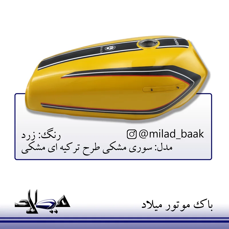 باک موتورسیکلت میلاد باک مناسب برای موتور سیکلت هوندا با حجم موتور 125، 150 و 200 می باشد، این باک بسیار باکیفیت و دارای ضخامت ورق 8 میلی متر است. حجم این باک تقریبا 10 لیتر و دارای بسته بندی اصولی است. از جمله ویژگی های باک موتورسیکلت میلاد باک رنگ ثابت و مقاوم در برابر آفتاب زدگی نیز می باشد، این محصول شستشو و چربی گیری می شود و دارای رنگ کوره ای مایع درجه 1 است. همچنین این باک دارای ضمانت تعویض کالا می باشد، این ضمانت تا 6 ماه اعتبار دارد و شامل سوراخ شدن باک در صورت عدم آسیب دیدگی باک است. در صورتی که گزینه همراه با قاب بغل رو انتخاب کنید یک جفت قاب بغل هم رنگ با جنس انتخابی شما همراه باک برای شما ارسال می شود. توجه کنید درصورت انتخاب نوع باک و قاب بغل قیمت ها تغییر کرد و در انتهای ثبت سفارش قیمت نهایی مشخص می شود. زمان آماده سازی باک 3 الی 4 روز کاری می باشد و سپس با پست پیشتاز ارسال می شود. لطفاً در زمان ثبت سفارش اطلاعات پستی را با دقت وارد کنید. در صورتی که گزینه پرداخت درب منزل رو انتخاب می کنید از ثبت سفارش خود اطمینان کامل رو حاصل فرمایید.