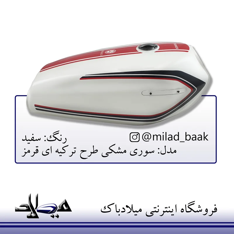 باک موتورسیکلت میلاد باک مناسب برای موتور سیکلت هوندا با حجم موتور 125، 150 و 200 می باشد، این باک بسیار باکیفیت و دارای ضخامت ورق 8 میلی متر است. حجم این باک تقریبا 10 لیتر و دارای بسته بندی اصولی است. از جمله ویژگی های باک موتورسیکلت میلاد باک رنگ ثابت و مقاوم در برابر آفتاب زدگی نیز می باشد، این محصول شستشو و چربی گیری می شود و دارای رنگ کوره ای مایع درجه 1 است. همچنین این باک دارای ضمانت تعویض کالا می باشد، این ضمانت تا 6 ماه اعتبار دارد و شامل سوراخ شدن باک در صورت عدم آسیب دیدگی باک است. در صورتی که گزینه همراه با قاب بغل رو انتخاب کنید یک جفت قاب بغل هم رنگ با جنس انتخابی شما همراه باک برای شما ارسال می شود. توجه کنید درصورت انتخاب نوع باک و قاب بغل قیمت ها تغییر کرد و در انتهای ثبت سفارش قیمت نهایی مشخص می شود. زمان آماده سازی باک 3 الی 4 روز کاری می باشد و سپس با پست پیشتاز ارسال می شود. لطفاً در زمان ثبت سفارش اطلاعات پستی را با دقت وارد کنید. در صورتی که گزینه پرداخت درب منزل رو انتخاب می کنید از ثبت سفارش خود اطمینان کامل رو حاصل فرمایید.