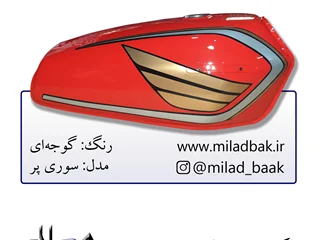 باک موتورسیکلت میلاد باک مناسب برای موتور سیکلت هوندا با حجم موتور 125، 150 و 200 می باشد، این باک بسیار باکیفیت و دارای ضخامت ورق 8 میلی متر است. حجم این باک تقریبا 10 لیتر و دارای بسته بندی اصولی است. از جمله ویژگی های باک موتورسیکلت میلاد باک رنگ ثابت و مقاوم در برابر آفتاب زدگی نیز می باشد، این محصول شستشو و چربی گیری می شود و دارای رنگ کوره ای مایع درجه 1 است. همچنین این باک دارای ضمانت تعویض کالا می باشد، این ضمانت تا 6 ماه اعتبار دارد و شامل سوراخ شدن باک در صورت عدم آسیب دیدگی باک است. در صورتی که گزینه همراه با قاب بغل رو انتخاب کنید یک جفت قاب بغل هم رنگ با جنس انتخابی شما همراه باک برای شما ارسال می شود. توجه کنید درصورت انتخاب نوع باک و قاب بغل قیمت ها تغییر کرد و در انتهای ثبت سفارش قیمت نهایی مشخص می شود. زمان آماده سازی باک 3 الی 4 روز کاری می باشد و سپس با پست پیشتاز ارسال می شود. لطفاً در زمان ثبت سفارش اطلاعات پستی را با دقت وارد کنید. در صورتی که گزینه پرداخت درب منزل رو انتخاب می کنید از ثبت سفارش خود اطمینان کامل رو حاصل فرمایید.